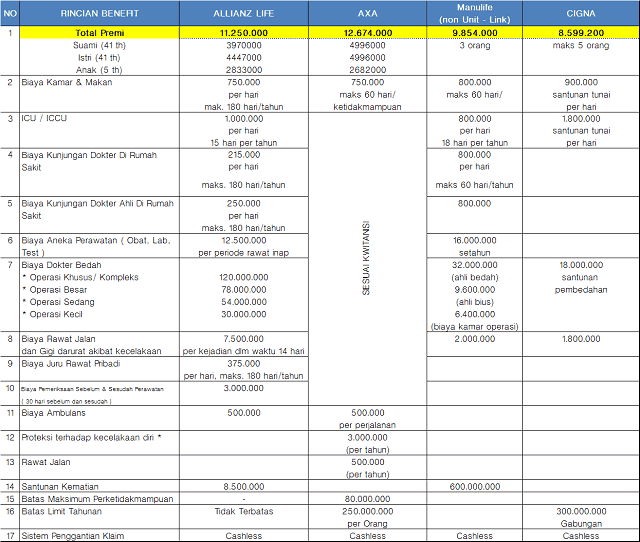 - Perbandingan Manfaat Premi Asuransi Kesehatan – klik disini