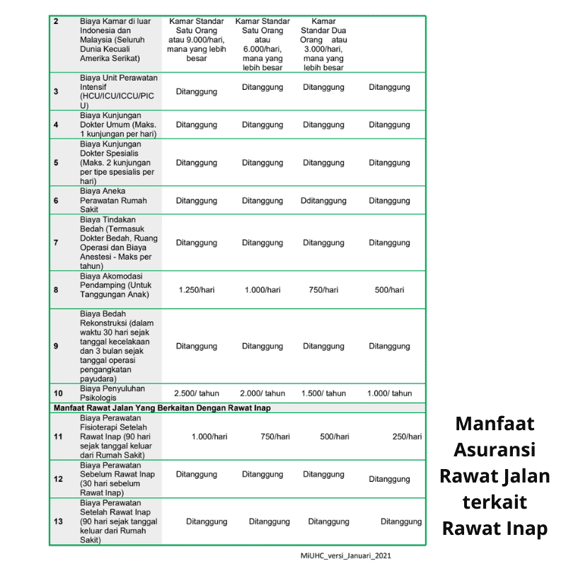 Dalam proposal asuransi kesehatan di bagian manfaat tercantum jenis rawat jalan yang ditanggung terkait rawat inap.