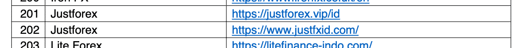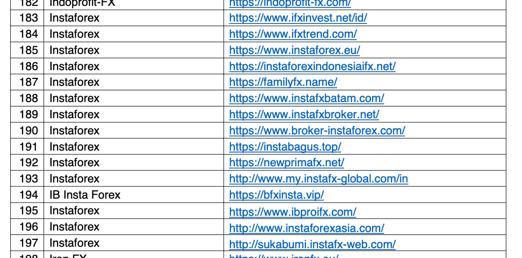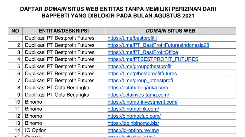 Untuk lebih jelasnya, kita lihat daftar broker forex yang diblokir Bappebti, berikut ini: