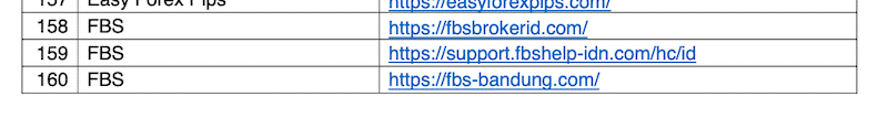 Keterangan resmi di situs Bappebti menyebutkan bahwa dari 117 domain situs web yang diblokir, terdapat 33 domain situs web yang menawarkan investasi forex melalui penjualan perangkat lunak (software) trading. Situs-situs tersebut menawarkan: