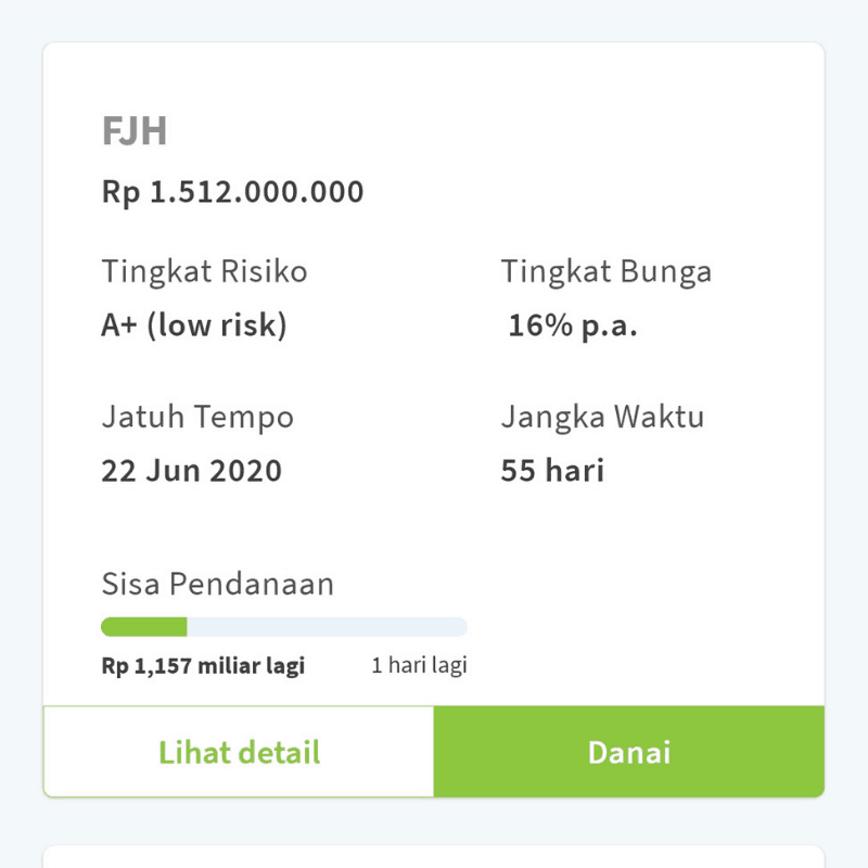 Setelah dana disetorkan, investor menerima pemberitahuan bahwa pendanaan sudah efektif dan pinjaman berjalan dengan tenor dan tanggal jatuh tempo.