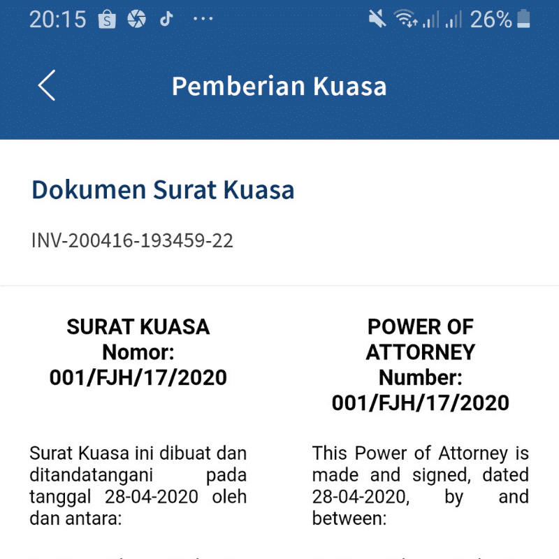 Setelah akun dibuka, investor harus menandatangani kontrak dengan penyelenggara P2P. Kontrak ditandatangani dengan digital signature sehingga investor tidak perlu hadir untuk tanda tangan basah namun cukup secara online..
