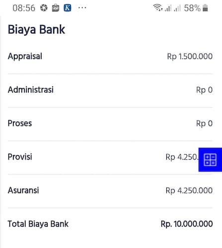Seperti sudah saya sampaikan, simulasi hanya menghitung estimasi beban angsuran setiap bulan. Sementara, saat mengambil pinjaman, Anda harus membayar sejumlah biaya yang jumlahnya tidak kecil.