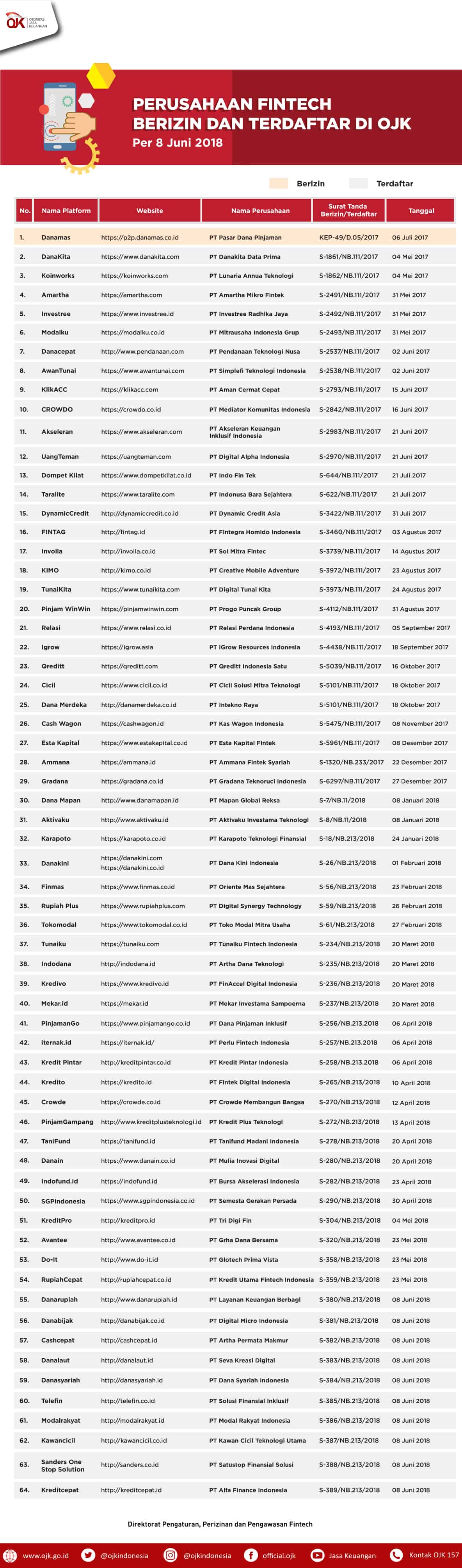 Ini adalah daftar pinjaman dana online yang terdaftar di OJK.