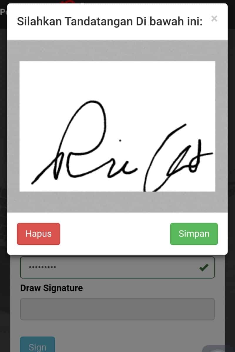 Proses berikutnya adalah tanda tangan elektronik atas Perjanjian Pinjam Meminjam. Tanda tangan elektronik ini adalah proses yang sudah disetujui oleh otoritas jasa keuangan OJK untuk peminjam dan pemberi pinjaman melakukan persetujuan perjanjian lewat online, tidak perlu tanda tangan basah.