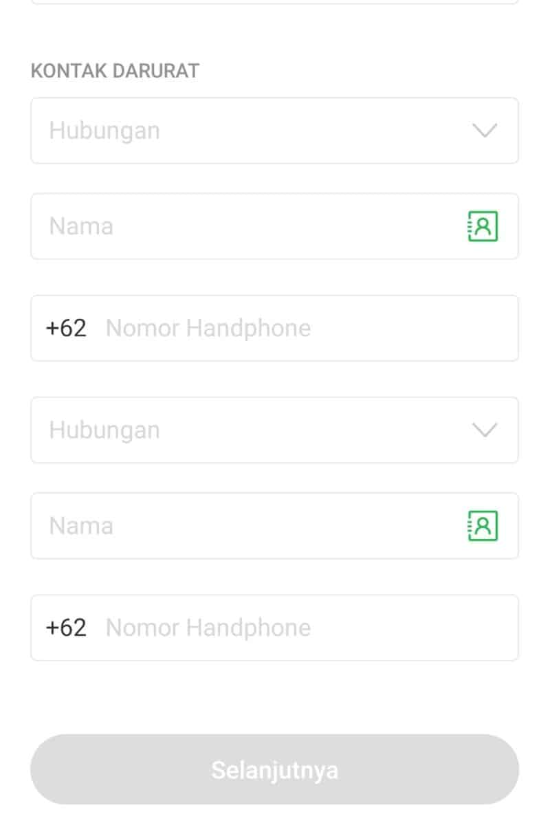 Informasi berikutnya adalah mengisi kontak darurat. Ada 2 kontak darurat yang Anda harus sampaikan.