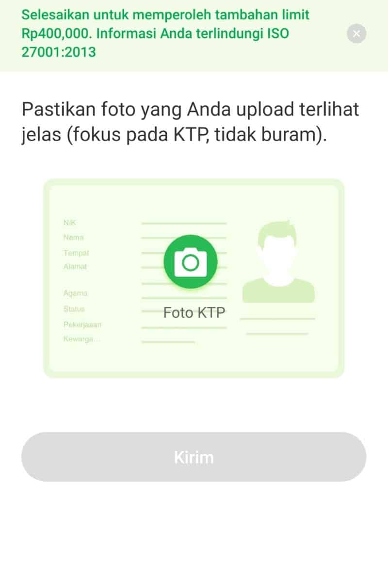 Selanjutnya adalah mengambil foto KTP. Ini juga wajib menggunakan kamera dari HP yang dipakai untuk apply pinjaman.