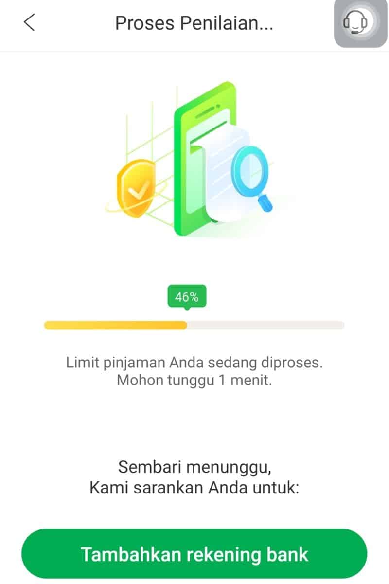 Jika disetujui, credit scoring akan memberikan rekomendasi, yaitu plafon maksimum Rp 1.6 juta dan pilihan tenor 14, 21 dan 28 hari.