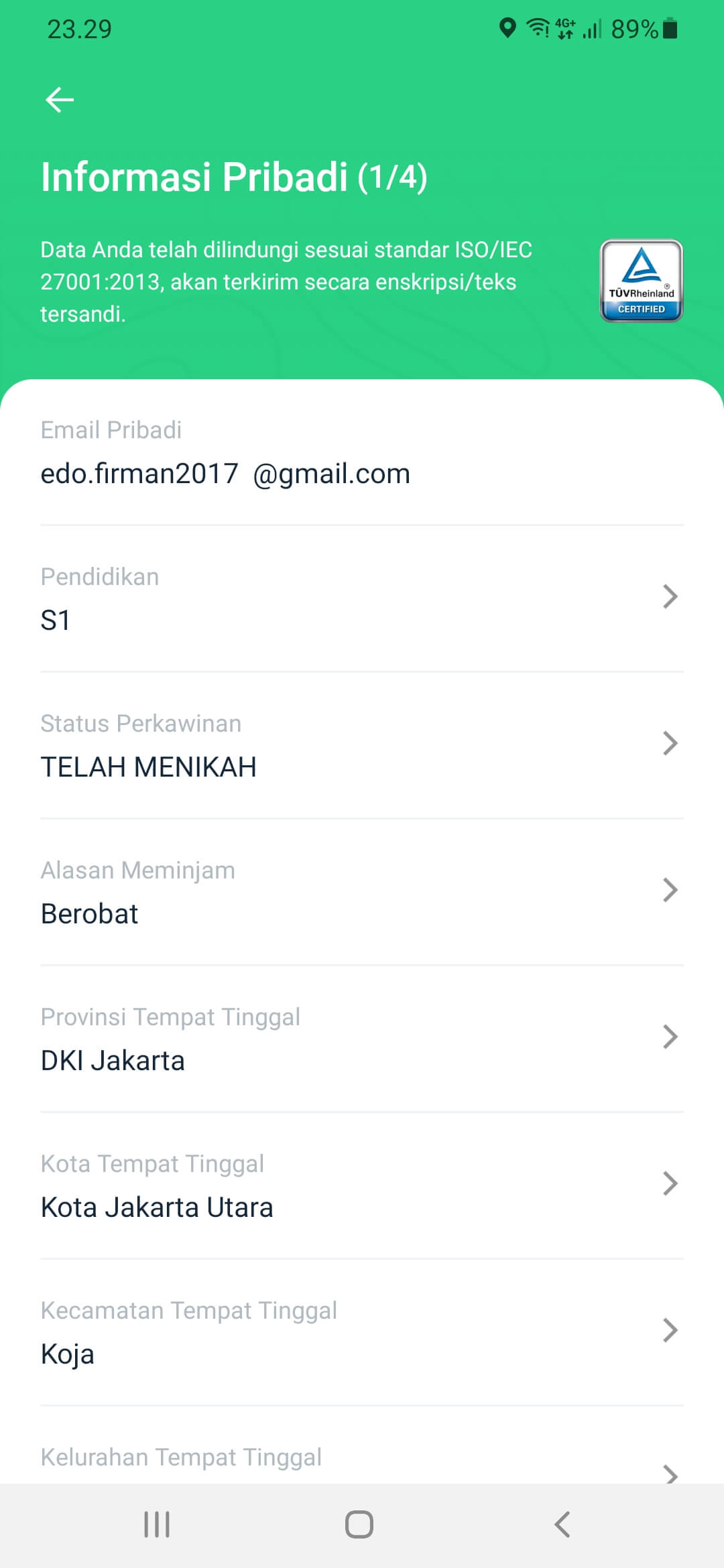 Isi dan lengkapi data pribadi sesuai dengan formulir dalam aplikasi.