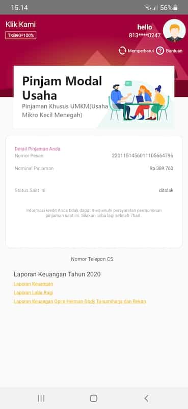 Dibandingkan KTA atau kartu kredit, limit pinjaman di KlikKami relatif kecil. Maksimum hanya bisa Rp 2 juta untuk multiguna dan Rp 5 juta untuk produktif.