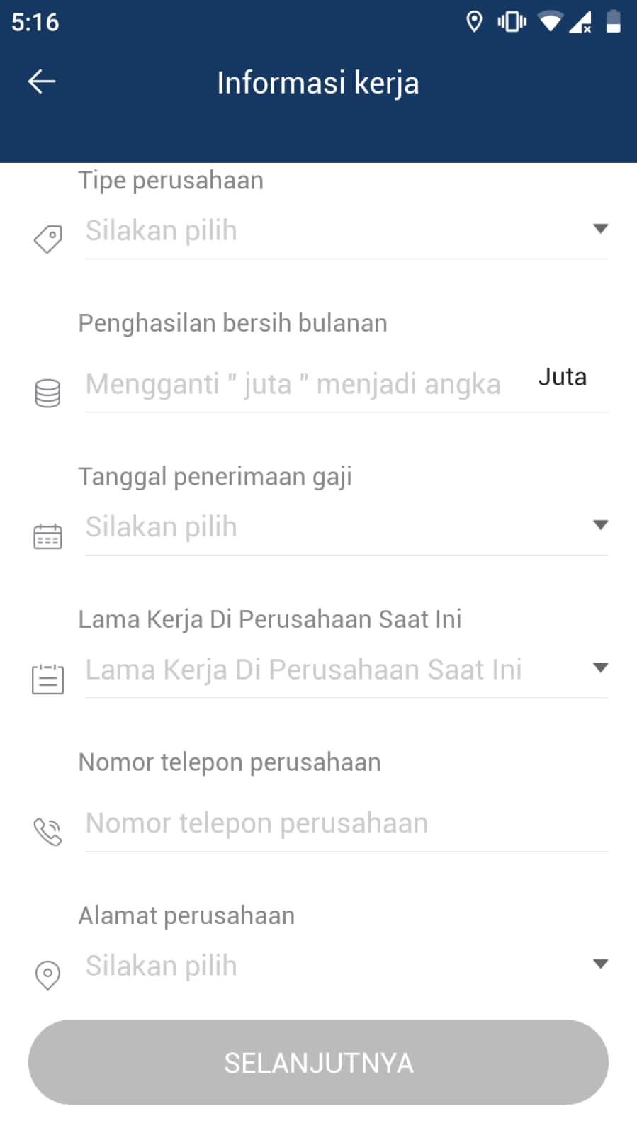 Isi dan lengkapi data pekerjaan sesuai dengan formulir dalam aplikasi.