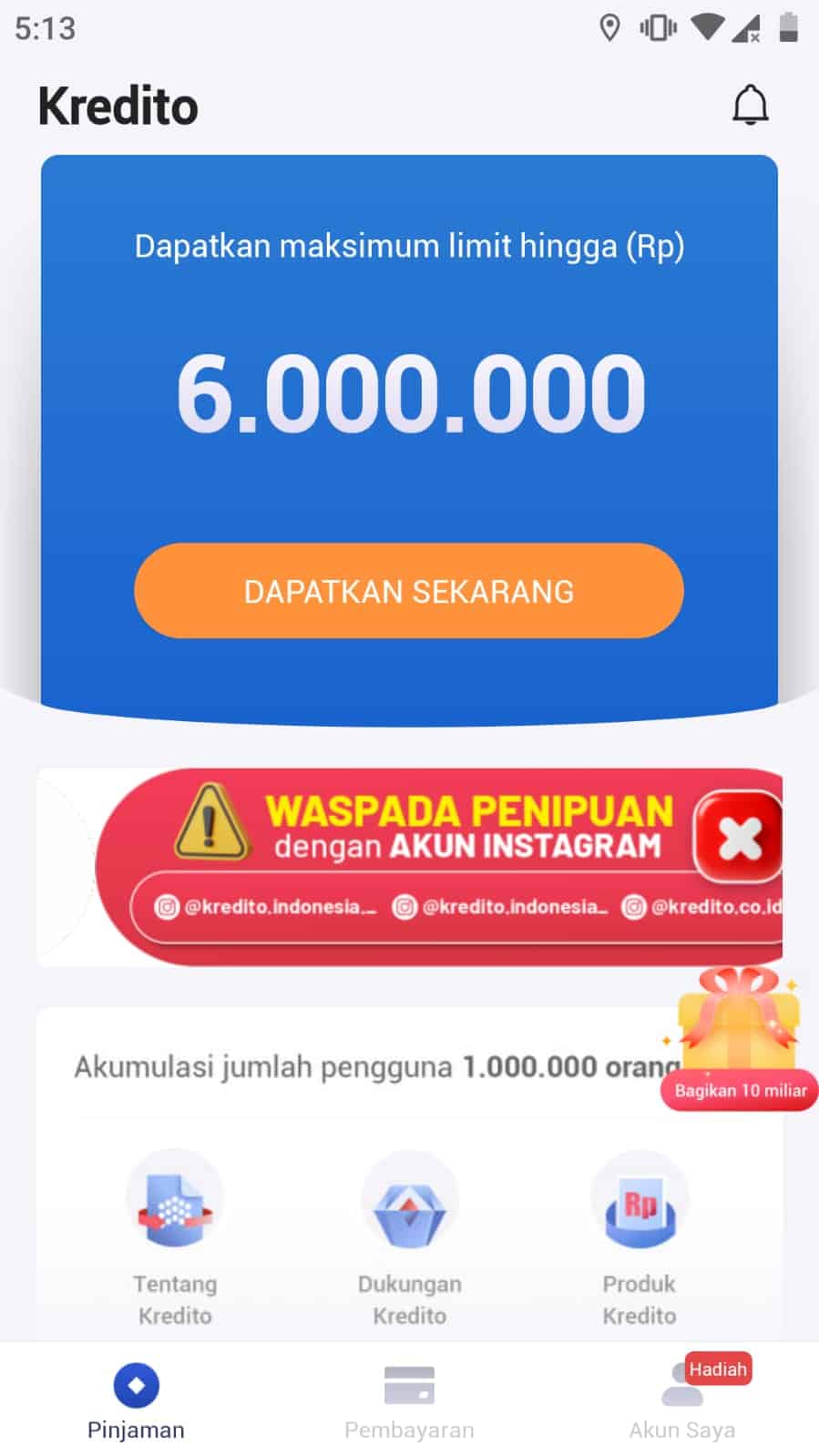 Dibandingkan KTA atau kartu kredit, limit pinjaman di Kredito relatif kecil. Maksimum hanya bisa Rp 6 juta.