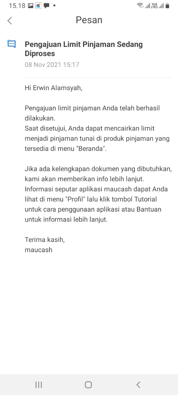 Buat yang butuh proses instan cair, Maucash tidak bisa. Ada jeda menunggu 1 hari untuk proses verifikasi.