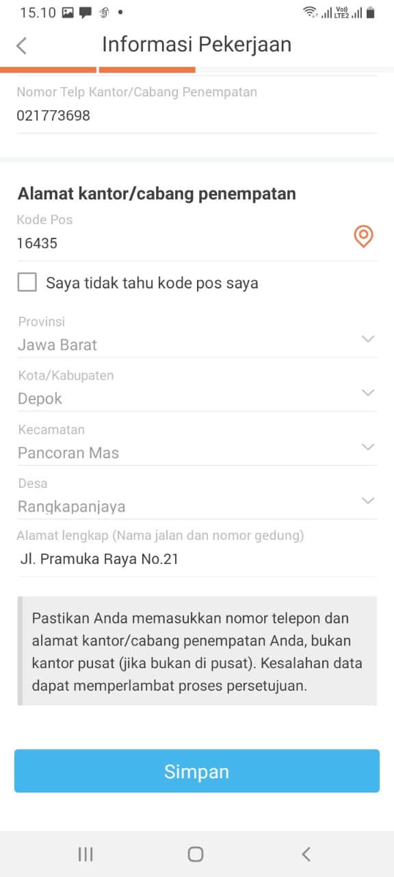 Tahap berikutnya pengisian data pekerjaan termasuk soal penghasilan per bulan. Bagian ini termasuk paling penting karena berdasarkan info disini, fintech menentukan apakah peminjam punya kemampuan keuangan untuk mengembalikan pinjaman atau tidak.