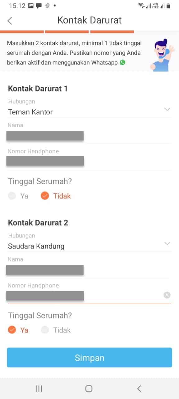 Karena itu pastikan memberikan no kontak darurat yang mengenal calon peminjam dan nomornya aktif. Banyak yang ditolak akibat kontak darurat gagal dihubungi.