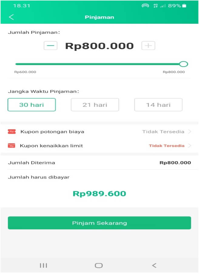 Tenor yang ditawarkan cukup menarik. Bisa pinjam untuk waktu singkat, hanya 2 minggu.