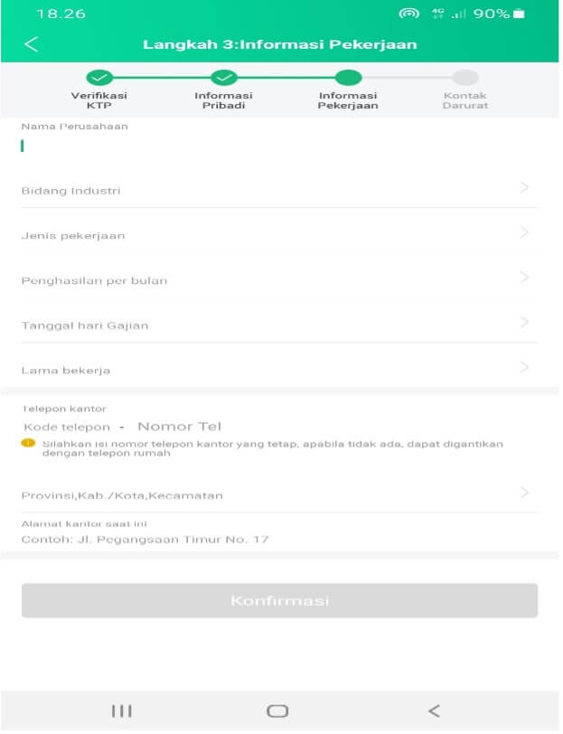 Tahap akhir setelah proses pengajuan di aplikasi diterima adalah verifikasi telepon. Verifikasi dilakukan kepada:
