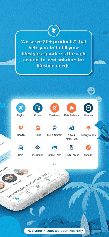 Aplikasi berlambang burung ini memiliki banyak merchant hotel, pesawat, bus, tempat hiburan, hingga restoran sehingga pengguna lebih leluasa dalam memilih.