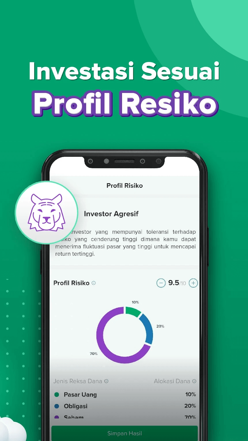 - Auto Risk Profiling: Untuk mulai kamu harus menjawab 6 pertanyaan supaya kami dapat menentukan profil resiko kamu dengan algoritma tanpa bias.