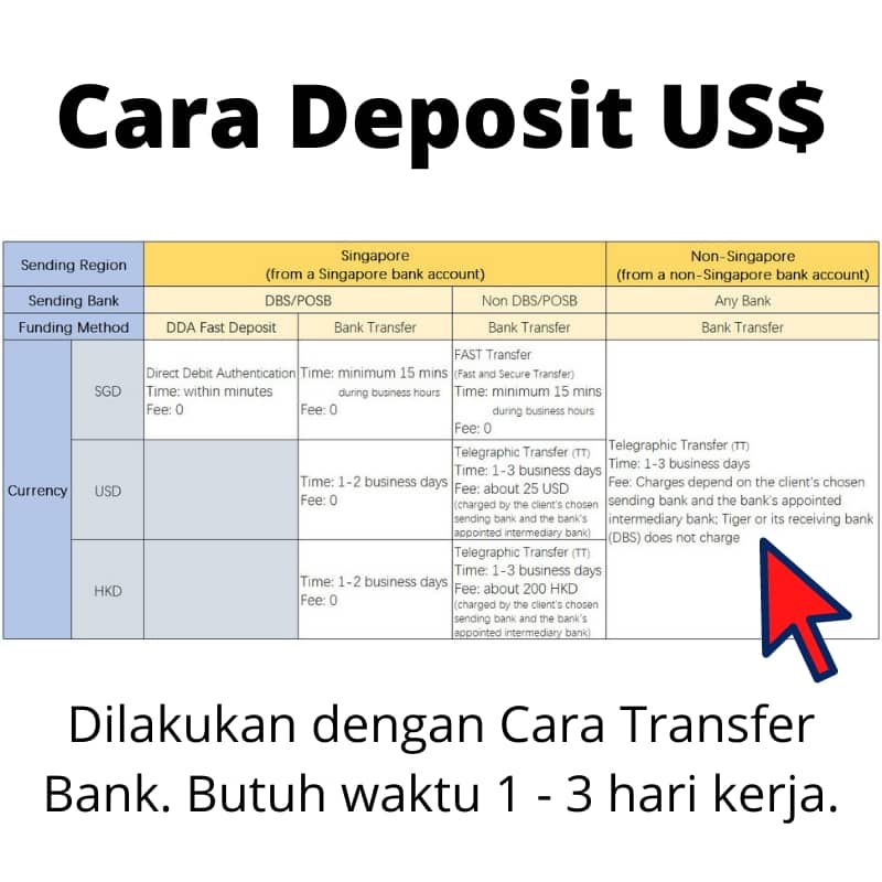Misalnya, Tiger Securities membebankan biaya transfer ke rekening bank di luar Singapore sebesar SGD 35 (sekitar Rp 350 rb) atau US $25.
