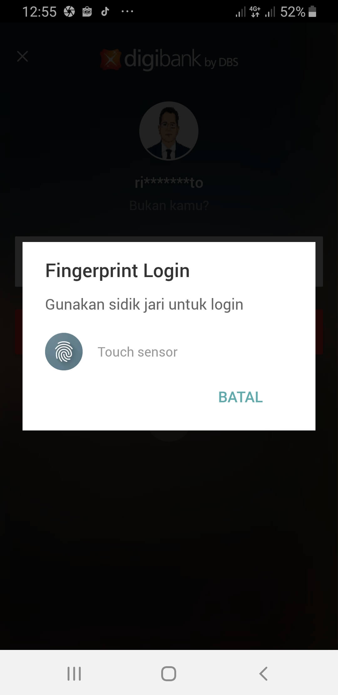 Untuk masuk ke aplikasi, Digibank menyediakan fasilitas penggunaan Sidik Jari untuk ponsel yang sudah bisa membacanya lewat NFC.