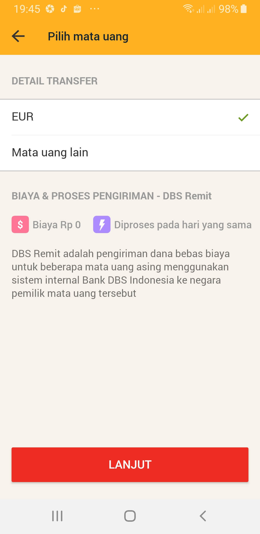Salah satu keunggulan aplikasi DBS adalah layanan gratis transfer ke luar negeri. Betul, nasabah bisa melakukan transfer ke luar negeri secara bebas biaya.